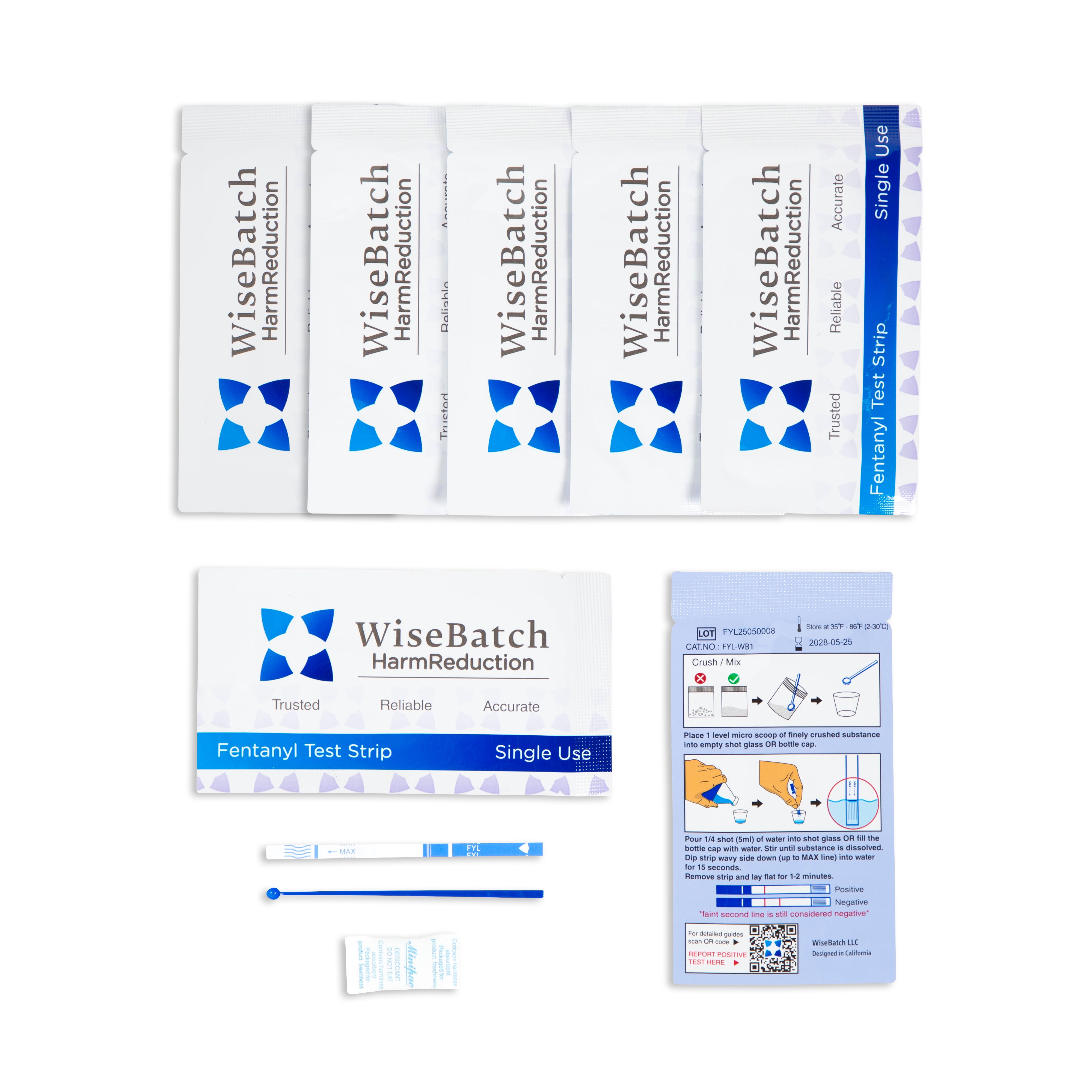 The WiseBatch Fentanyl Test Strip Box Includes: